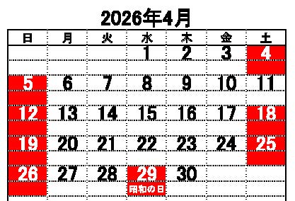 2026年4月の休日カレンダー